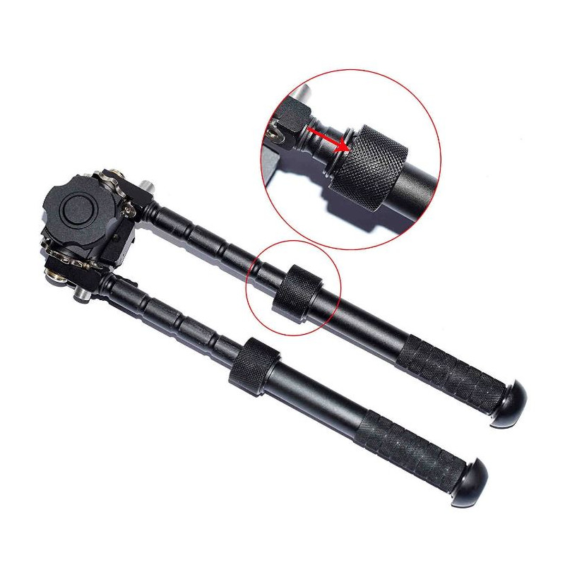 Bipiede Atlas 360 realizzato dalla Feelright Bipod. E’ un bipiede dotato di snodo centrale multi-assiale che ne consente l’utilizzo in svariate posizioni, con rotazione di 360°, e inclinazione destra-sinistra di 15°. La facilità di questi movimenti può essere agevolata mediante la ruota posta centralmente al bipiede. Costruito in alluminio con finitura anodizzata nero opaco e con il blocco centrale in acciaio, deve essere agganciato direttamente alle rail Picatinny. Per l’apertura dello sgancio, premere prima la levetta di sicurezza. Altezza centrale variabile da 16 a 23 cm, su cinque posizioni. I piedini sono realizzati in gomma per una migliore stabilità. Peso di 350 grammi. In dotazione chiave esagonale per la regolazione dell’attacco Picatinny.